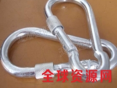 安全钩,也叫“主锁”,分普通式(旋转式)和弹簧钩(自锁式)两种。外形多如“D”(救援、军事)、“8”字形(工程、建筑)。