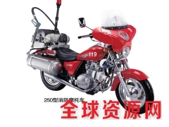 250型消防摩托车适用于狭小窄巷、集装箱港口码头、部队、机场、高速公路、交通车辆密集的城市街道,具有方便快捷的特点,对汽车火、房间火、油火等均有奇效。该车机动性强,灭火效率高,行驶及战斗展开速度快,是今后消防发展的主导产品。