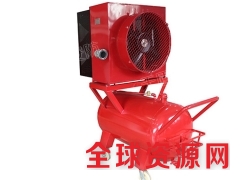 用消防车、消防艇或专用水泵供给 0.3~1.0MPa 的压力水,一部分经主管道直接进入水 轮机,驱动水轮旋转,并通过水轮机轴带动风轮转动。另一部分水流经比例混合器,在喷嘴处 流速急剧增大,使真空室形成真空,储罐内的高倍数泡沫液由吸液管吸入比例混合器的真空 室,并与从喷嘴射出来的水混合,一起进入管道,再与从水轮机流出的水第二次混合,经管 网通过喷头把泡沫混合液以雾状形式喷向发泡网,在网的内表面形成一层薄膜,由风轮吹到 网上的风,吹胀成大量的气泡,构成为高倍数泡沫,淹没或覆盖燃烧物体的表面。阻断吸热 辐射,冷却降温,隔绝稀释空气,覆盖窒息灭火。